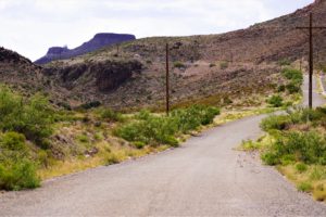 The road to Magdalena Peak (seen in the background).